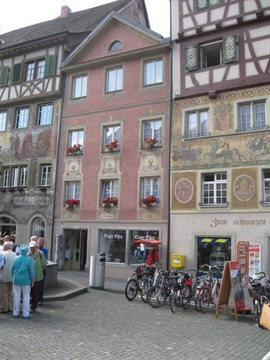 Český Krumlov-Hotel Ruze entrance and sgraffitoed building